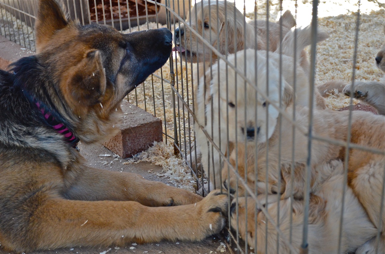 Elsa loves her kids and her puppies!